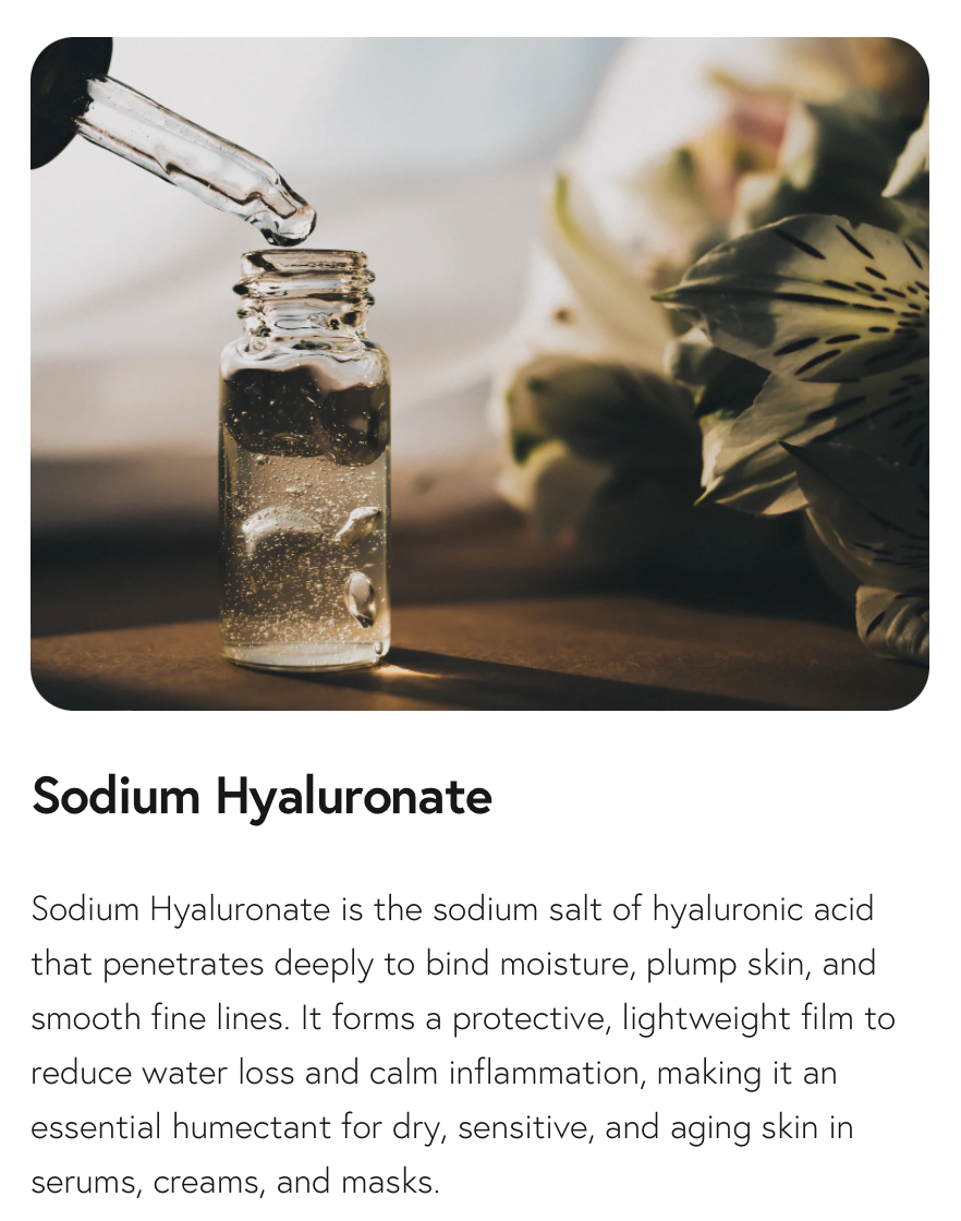 Water, Propanediol, Pentylene Glycol, Glycerin, Sodium Hyaluronate, Disodium Tetramethylhexadecenyl Succinoyl Cysteine, Sodium Phytate, Citric Acid